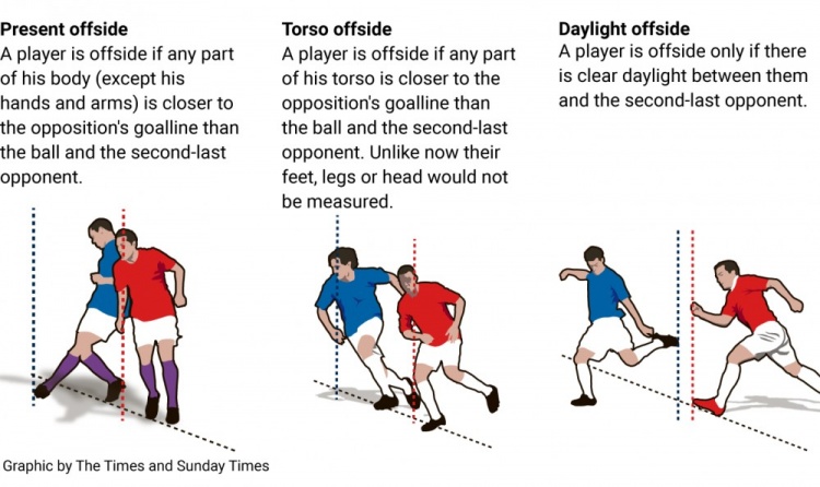 值得一提的是,英国各协会在上周征询欧足联高层意见后,获得了欧足联的支持。预计他们将提出一项折中方案:即仅当球员躯干的任何部分处于防守球员之前时,才被视为越位,而脚、腿和头部不纳入测量范围。